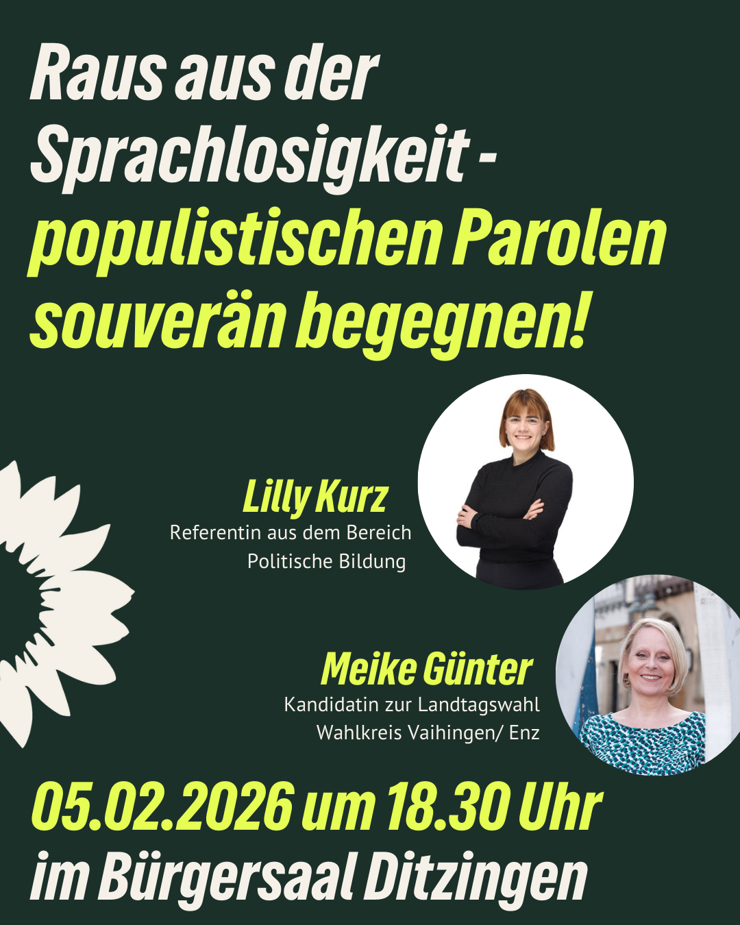 Ein gut gefüllter Bürgersaal, konzentrierte Aufmerksamkeit und lebendige Diskussionen: Unsere Veranstaltung „Raus aus der Sprachlosigkeit – populistischen Parolen souverän begegnen“ am 05. Februar 2026 war ein voller Erfolg. Das große Interesse zeigte eindrucksvoll, wie sehr das Thema viele Menschen im Alltag beschäftigt.