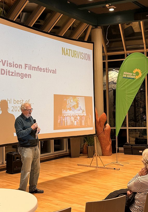 Tierleben am Waldboden, die Welt der Füchse, faszinierende Chamäleons: Dr. Kay Hoffmann vom Ludwigsburger Festival NaturVision zeigte am 14. November im Bürgersaal drei eindrucksvolle Filme des Festival-Jahrgangs 2025. Nach dem Auftakt mit dem preisgekrönten Kurzfilm The Leap Beneath porträtierte Alles für die Füchse sehr informativ die sprichwörtlich schlauen Wildtiere und beleuchtete dabei kritisch die Jagd und die geltende Gesetzgebung. Madagaskar oder der große Karneval der Chamäleons führte die erstaunlichen Fähigkeiten und bizarren Gewohnheiten der urtümlichen, farbenprächtigen Echsen vor. Dokumentarfilm-Experte Kay Hoffmann gab aktuelle Einblicke in die Entwicklung des Festivals und Hintergrund-Informationen zur Produktion von Naturfilmen. Angeregte Gespräche rundeten den Filmabend im gut gefüllten Bürgersaal ab. Ein herzliches Dankeschön an alle, die tatkräftig mitgeholfen haben!